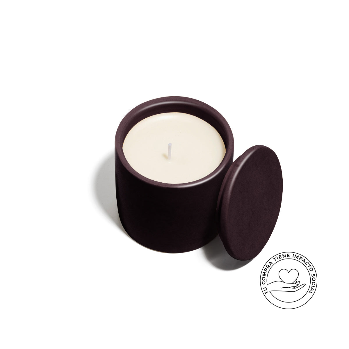 Vela aromática vegetal en exclusiva cerámica de 9 cm de diámetro y 9 cm de alto.